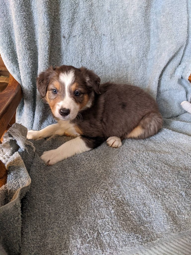 Ember is our newest Border Collie, Red TriColor. She’s only 7 weeks old. Puppies expected winter 2026-27. She will pair with River.