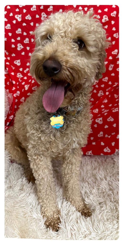 Sadie is a gorgeous Red Merle Mini Australian Shepherd a Toby is our Café Mini Poodle.